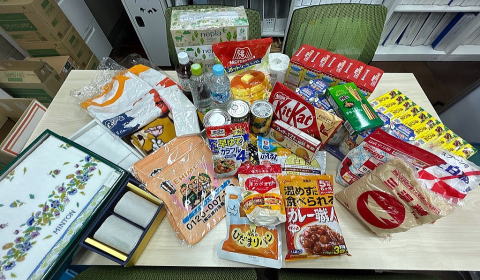 県民環境部では、ボランティア活動の一環として、令和3年度から毎年フードドライブ活動を実施しています。 今年度も昨年度に引き続き、食品に加え、タオルやティッシュ等の日用品について募集したところ、約2週間で食品61点、日用品15点が集まりました。 集まった物品は、フードバンク活動団体(特定非営利活動法人eワーク愛媛)へ贈呈しました。