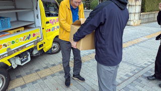 部内有志職員が参加し、129個の寄附食品が集まり、11月28日(金)にフードバンク活動団体(特定非営利活動法人eワーク愛媛)へ贈呈しました。 |